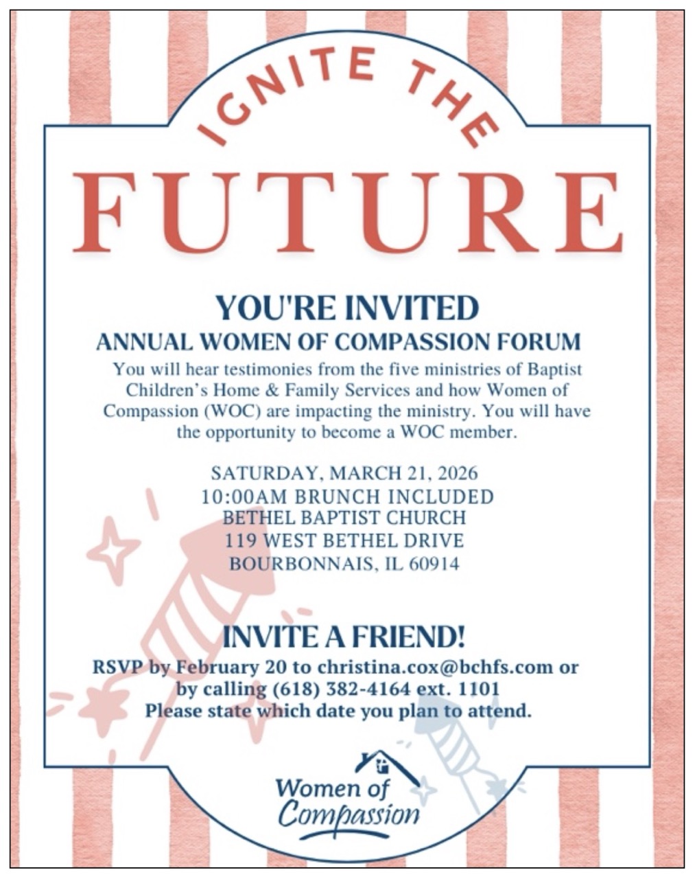 Join us as we hear updates and testimonies from the ministries of Baptist Children’s Home and Family Services and how the Women of Compassion are impacting the Ministry.
